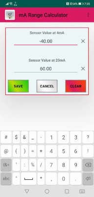 Calculate the range of a mA sensor by entering its value at 4 and 20 mA.