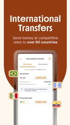 Inter allows you to send money abroad directly from your phone, easily and securely, whenever you want. Take control of your finances the modern way. Get access to a range of services and benefits directly on your app.