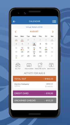 Know your activity – Use the Calendar to see upcoming paydays and payments, and view a history of your transactions. You can pay bills, schedule bill reminders, track external payments, view potential Danger Days and more.