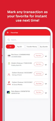 Transfer Money instantly to any mobile number or Bank accounts. Recharge or Buy Data for you and your loved ones. Pay Electric, Water, Cable TV, Solar, Transport, Postpaid Bills & much more at the convenience of your home. Scan & Pay at merchant outlets. Manage more than one account through one app. Sign-in & do your transactions Securely. Add your transactions as Favorites for quick checkouts.
